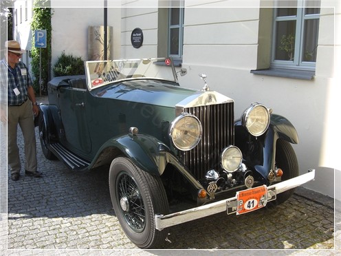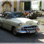 Beim Start an der Friedenseiche stellte Helmut Zwickl die Fahrzeuge und Fahrer des Autokorsos vor, darunter viele seltene Modelle wie das Rolls Royce-Cabrio, Baujahr 1935 oder den Fiat 600 im Originalzustand mit Italien-Flagge und jeder Menge Beulen. Besonders beeindruckend der Chevrolet Belair von 1953 mit Klimaanlage und samtweichem Sound, ein Hingucker auch der weinrote Jaguar XK 140 von 1955.